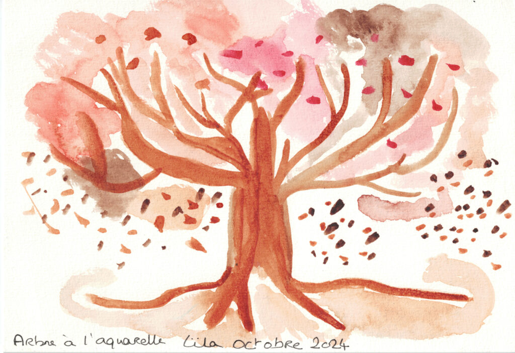 Peinture aquarelle sur papier gris grammage 300g format A4 vernis vitrifacteur sur sujet