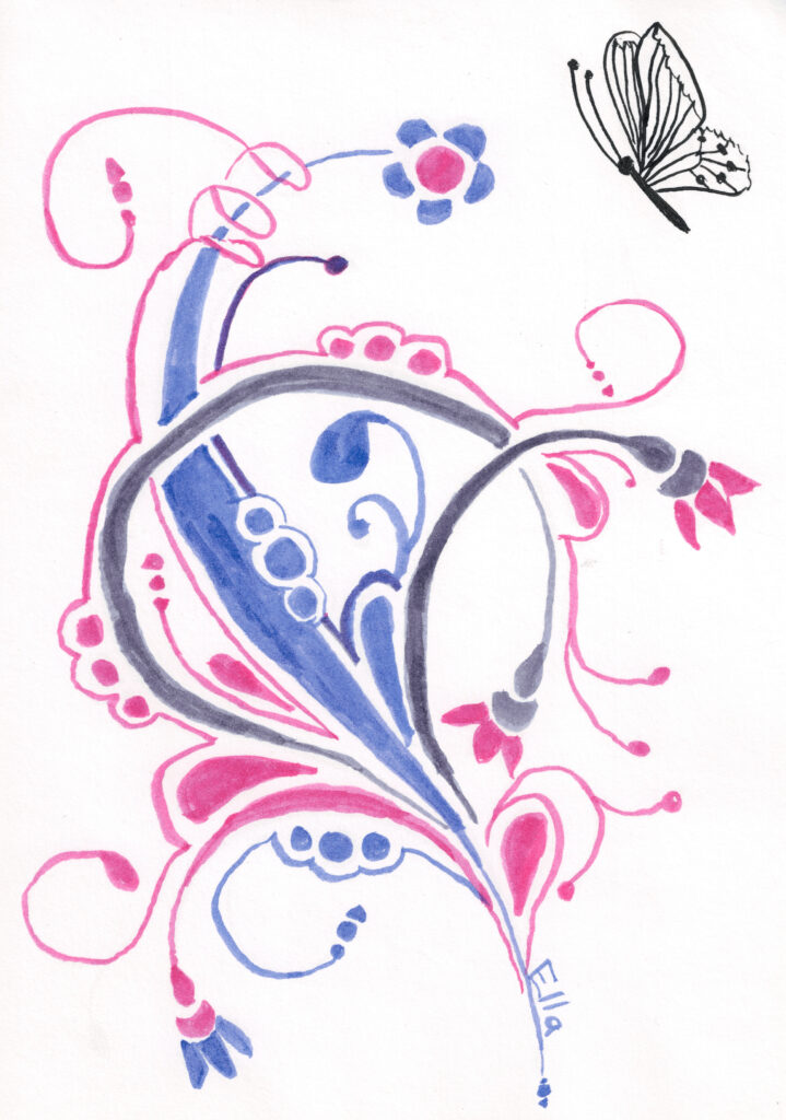 Feuille bristol A4 feutre acrylique et encre de chine 2026 Ella